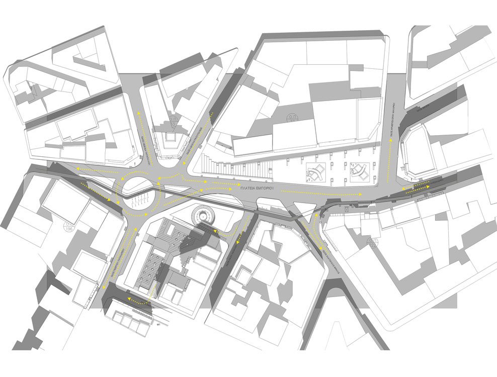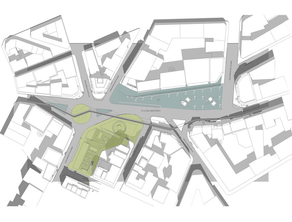 In fact, one of main aspects that Emporiou square has to deal with is the significant presence of cars and buses. Being a hub, it is a very busy square with considerable problems about parking. The proposed project suggests the construction of a multilevel underground parking with the aim to free the ground level area from the abusive one.